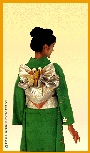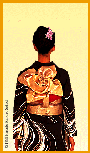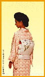 An obi is the sash tied around a kimono. It can be tied in a variety of simple and eleborate ways. An obi may be as wide as one foot and as long as 13 feet. Some complicated styles may take as long as half an hour to tie.