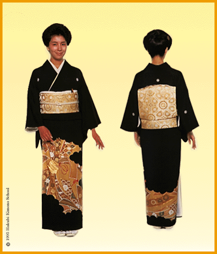 In contrast, a married woman wears a kimono with a short sleeve.