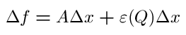 Definition: Let f(x) be a one-variable function on a domain D. Let x=c be in D and let P, Q the change in x be defined as above. We say f has a linear approximation at c if, for our chosen c, there is a constant A and an error function of Q, such that: