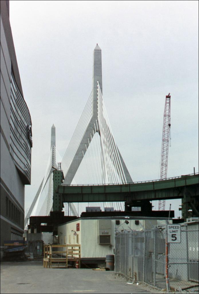 The curved green ramp used to be the entrance to 93 South from Leverett Circle and Storrow Drive. On the left, the Fleet Center and North Station.