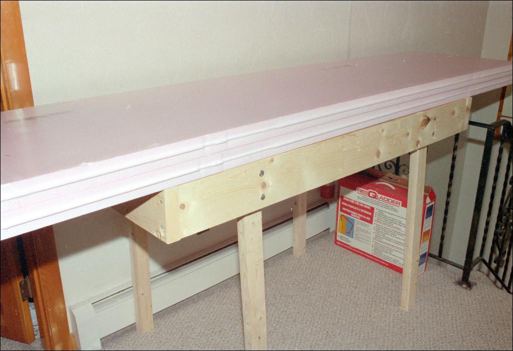 The actual layout will be built on top of two 2"x2'x8' sheets of pink insulating foam, reassembled into a 30"x60"x4" block.