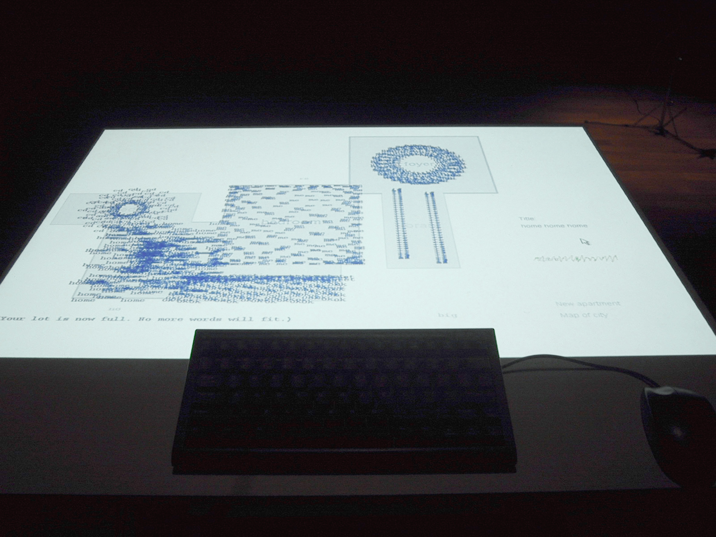 text entered by the user is organized in rooms of an apartment whose floor plan constantly changes