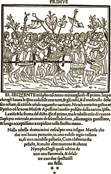 1499 francesco colonna. hypnerotomachia poliphili. aldus manutius weds typography of page layout with beauty of illustrative imagery.