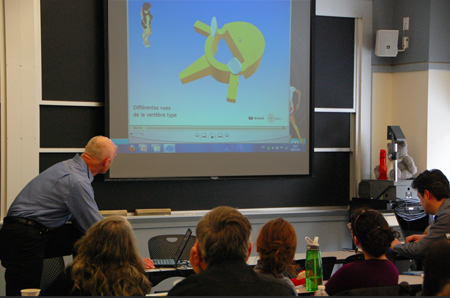 Professor Patrice Thiriet and artist Olivier Rastello presented their suite of 3D visualization tools for anatomy education at MIT on Wednesday, January 26, 2011. The tools were created at the University of Lyon1 in France, by a team comprised of technologists, domain experts and visual artists who have compiled an open source suite that is freely available online. The interactive tools allow students to explore various aspects of human anatomy from perspectives that were hitherto impossible.