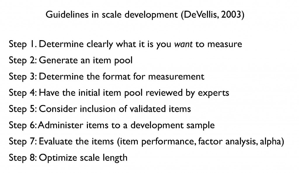 DeVellis, RF. (2003) Scale Development: Theory and Applications, Chapel Hill. (SAGE Publications Inc.)