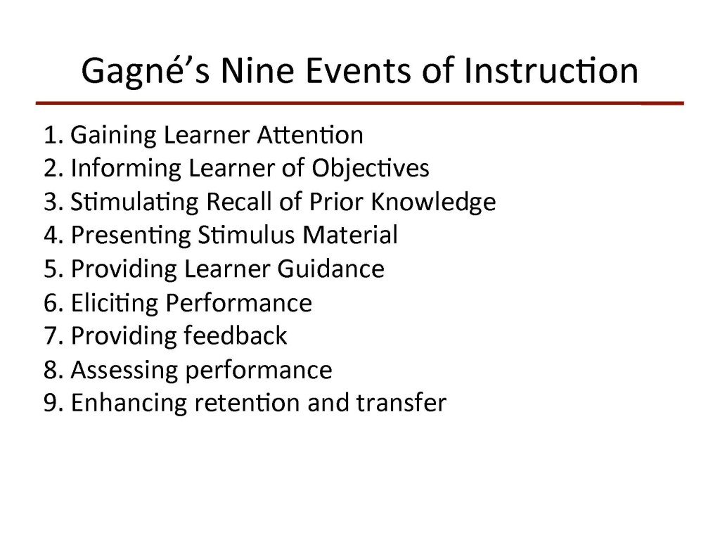 Gagne, R. (1985) The Conditions of Learning and the Theory of Instruction. New York: Holt, Rinehart, & Winston.