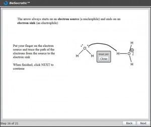 A screen shot from the "Arrow Pushing CLUE" example using the BeSocratic assessment tool, under development by Professors Cooper and Klymkowsky. Click to view larger image.