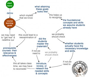 A flow-chart describing the logic of course design. Published in Klymkowsky, 2011, Getting serious about science education, ASBMB Today. Click to view larger image.