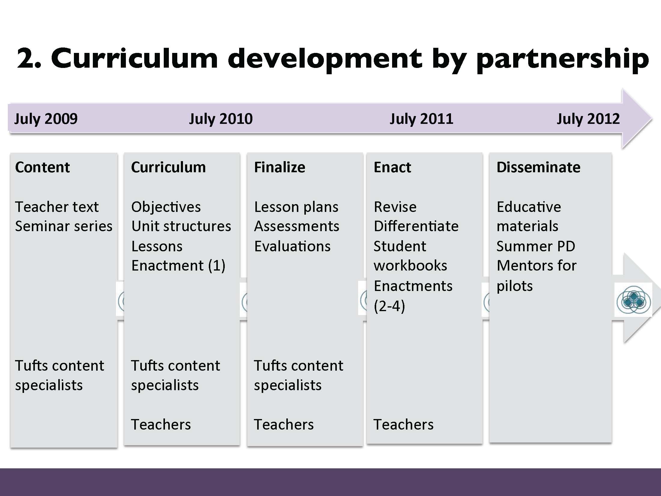 Figure 1. Great Diseases Curriculum Development. The Great Diseases curriculum is developed through a multi-step process and is the result of a partnership between teachers and researchers.