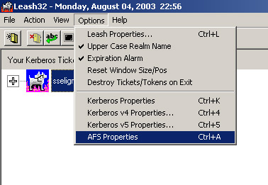 kerberos, choose "AFS Properties". Within AFS Properties change "AFS Disabled"