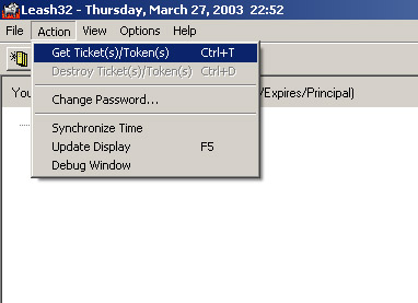 From the Leash32 menu, select "Action" and then "Get Ticket(s)/Token(s)"