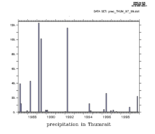 figure 3a: monthly averaged rainfall in Thumrait – 1987-1999