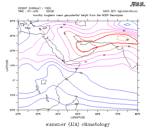 figure 2a: climatology of summer (JJA) geopotential height at 1000mb level
