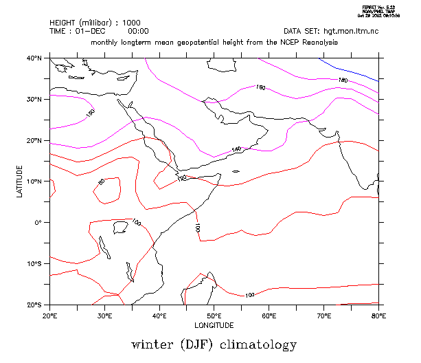 figure 2b: climatology of summer (DJF) geopotential height at 1000mb level