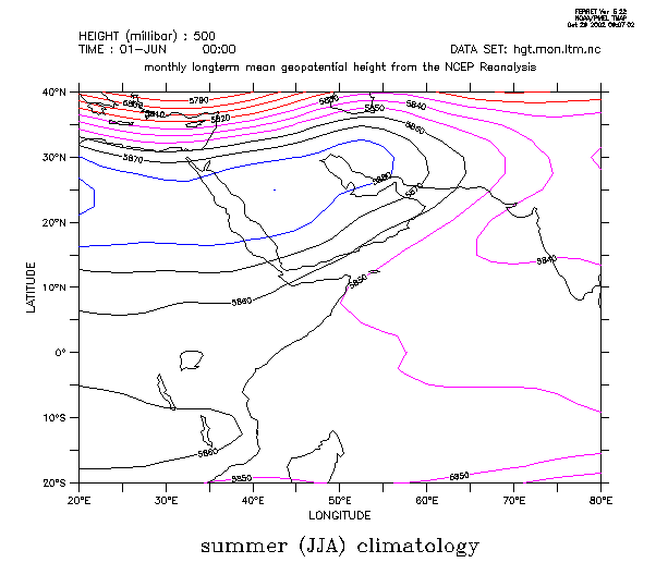 figure 3a: climatology of summer (JJA) geopotential height at 500mb level