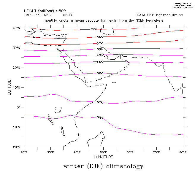 figure 4a: climatology of summer (DJF) geopotential height at 500mb level