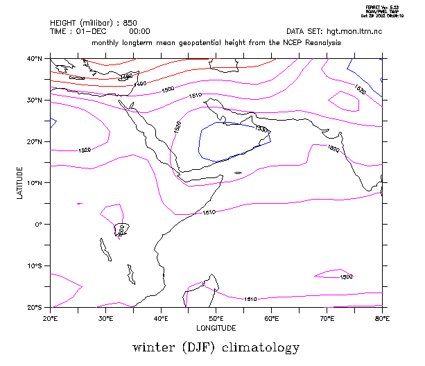 figure 3a: climatology of summer (DJF) geopotential height at 850mb level