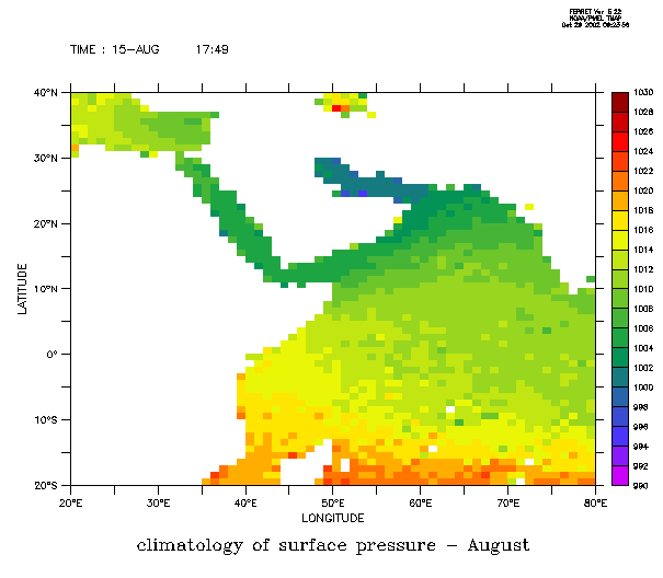 figure 1: climatology of August Sea Surface Pressure over the Arabian