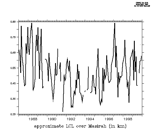 figure 4d: time series of Lifting Condensation Level in Masirah (in