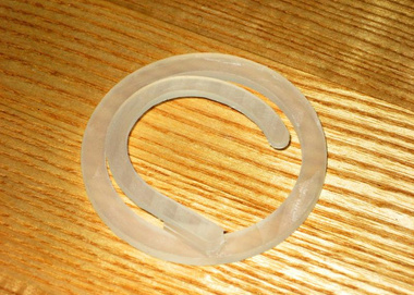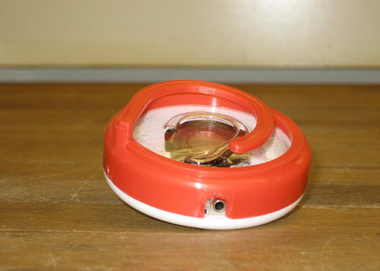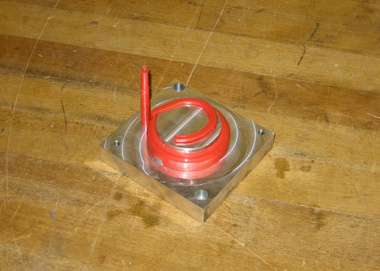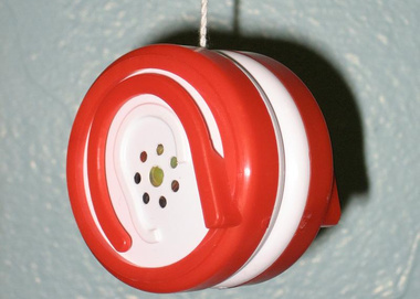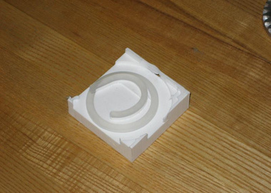 Selected Design Features: One of the most challenging aspects of the yo-yo was the mouse-hole through which the audio cable passes. Because it's located on the side of the yo-yo, and our injection molding machine was not set up for side actions, we needed to create the hole as two opposing U-shaped tunnels in the red ear-clip and the white core. The mold geometry necessary to generate this feature later caused significant flash issues.