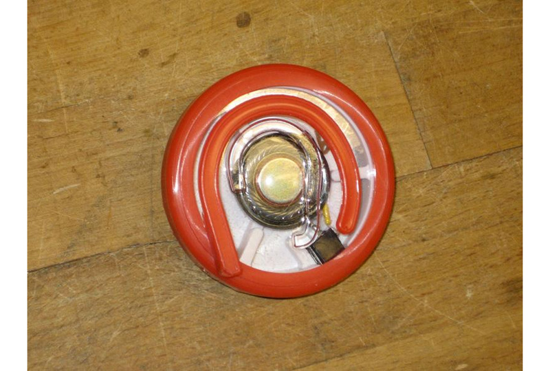 An assembled yo-yo half with a transparent vacuum-formed speaker cover.