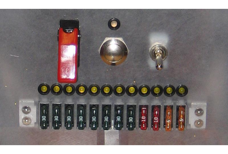The control panel features eight 30-amp relays and a missile switch.