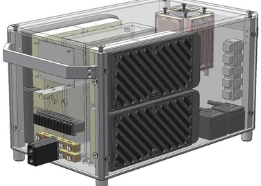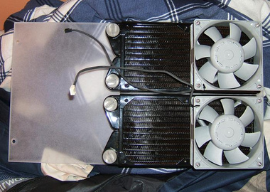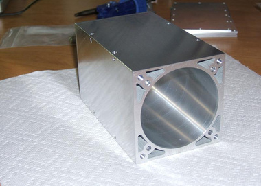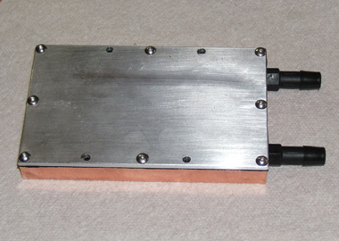 An assembled cooling block. Four of these are used to extract heat from the eight thermoelectric cooling modules. |