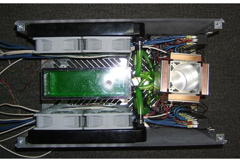 A view from above with the side and top panel removed, showing the overall layout of the machine's components.