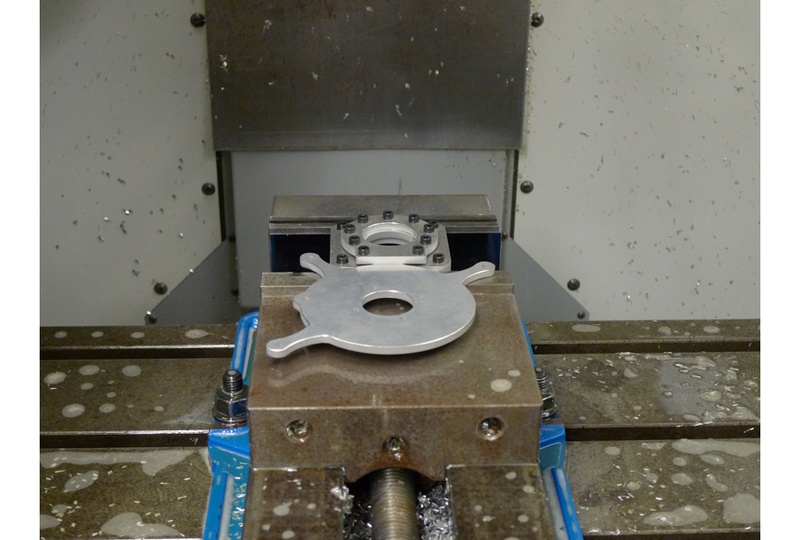 Post-machining the precision bearing bore in a waterjet-cut "shift plate."