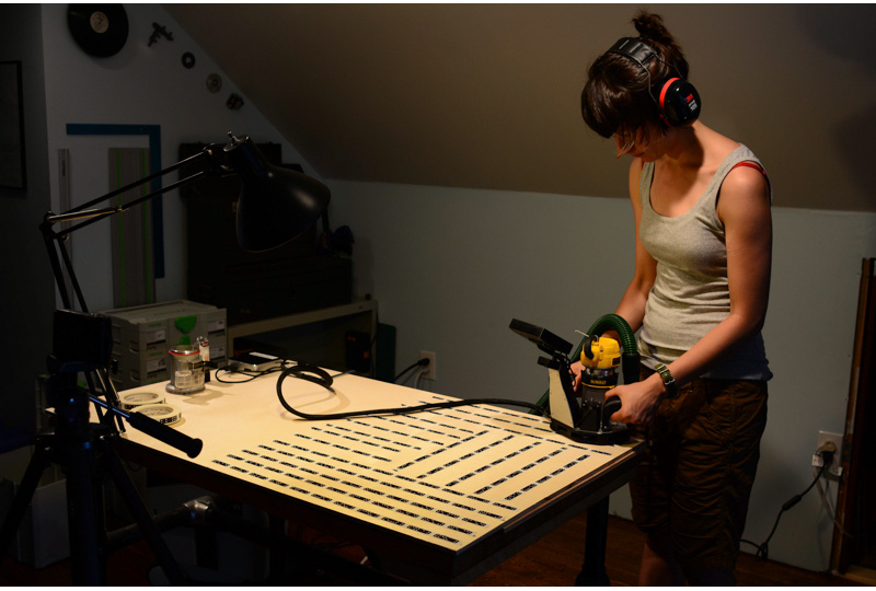 My friend Nadya Peek, taking Armstrong for a spin in my attic.