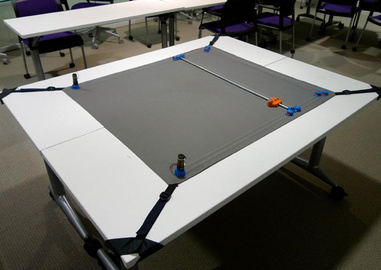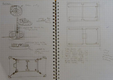 | The mechanism (later named CoreXY) was first prototyped using thumbtacks and a cardboard box. |