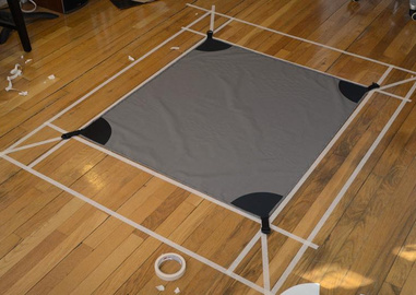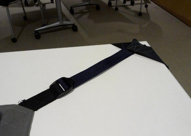 Tension is imparted on the fabric using nylon webbing and buckles. |