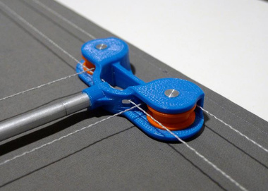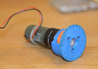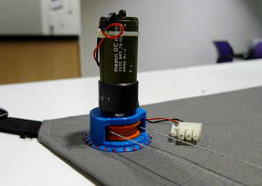 | A DC motor is adapted to the fabric using a 3D printed part. |