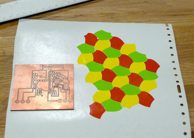Some additional examples of a PCB and tiling vinyl stickers made using the Fab-in-a-Box toolkit. |