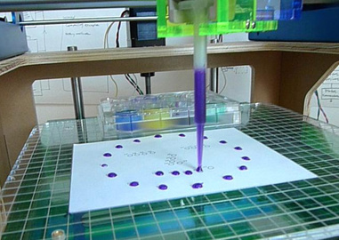 | This test pattern demonstrated that the repeating pipette could accurately position drops of reagent. |