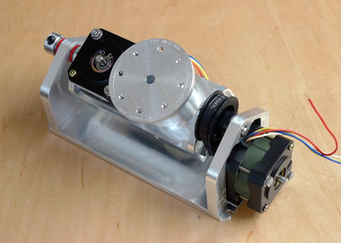 | The trunnion can be combined with the Multifab stage to achieve 5-axis positioning. |