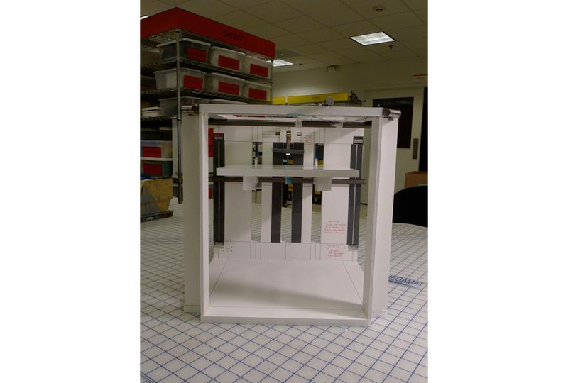 The table is actuated by a similar mechanism as the XY stage, with some assistance from a constant-force spring.