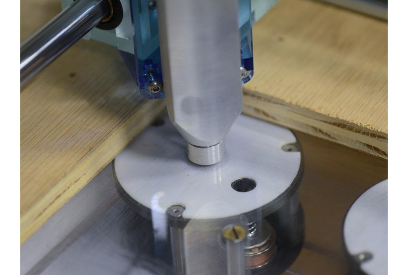 Each puck contains an embedded magnet that can couple to the head of a moving XY stage.