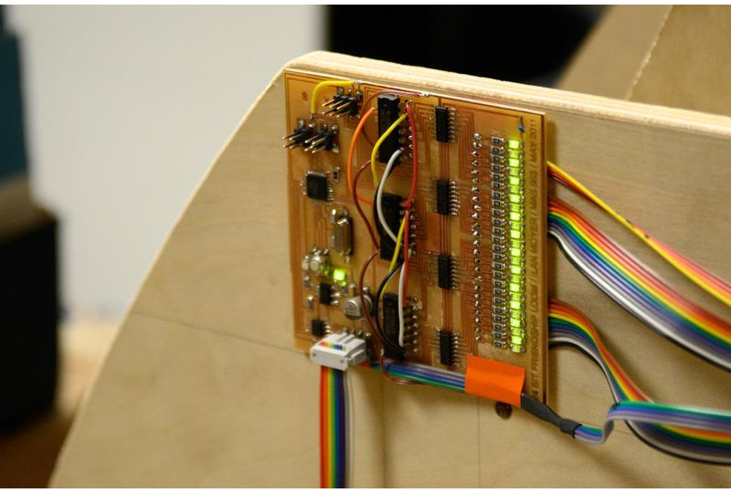 The loom's 24 electromagnets are energized by a Gestalt-based control board.