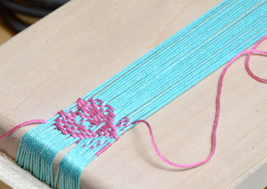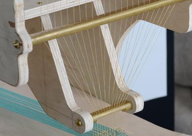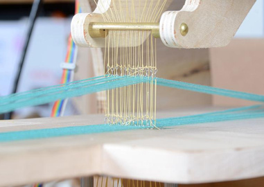 Each control cable ends in a loop through which one of the warp threads passes. The lifted threads create a shed for weaving. |