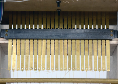| The flexures are constrained by a steel guide. Pins in each flexure keep it from falling thru the guide. |