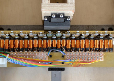 The loom's 24 electromagnets are energized by a Gestalt-based control board. |