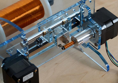 | A coil-winder was built to precisely wind each of the electromagnets. |