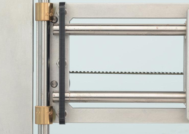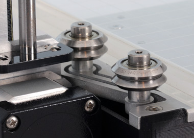 | Shaft parallelism is set by laser-cut delrin yokes. |