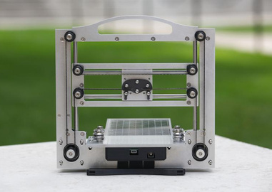 | An H-bot, built with similar construction to Popfab, provides motion in the XZ plane. |