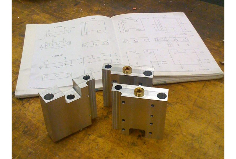 Each carriage block was machined, with the intention of eventually extruding the profile.