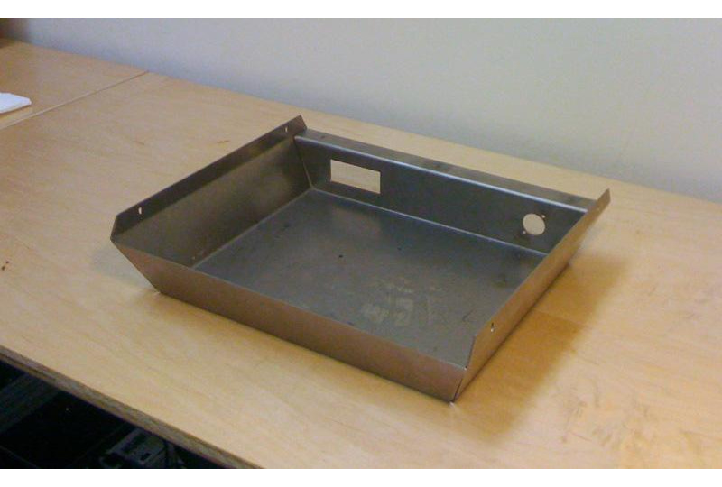 The electronics enclosure was bent from a sheet of waterjet-cut steel.