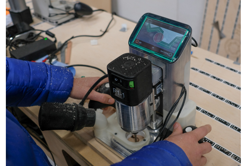 The first assembled Origin Proto 1 (P1) unit, actually cutting.