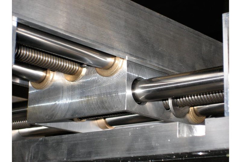 The carriage is made of 4" square extruded aluminum tube.