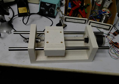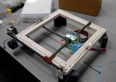 Selected Design Features: High-resolution stepper motors and micro-stepping drivers are used to achieve approximately 0.001" resolution in the X and Y directions. Because both motors remain stationary, thereby reducing the mass of the toolhead, high speeds and accelerations are possible. The Z axis is driven by a leadscrew mechanism easily capable of lifting the table and build surface.